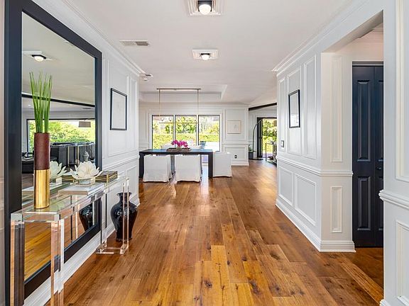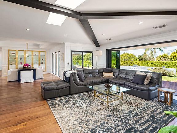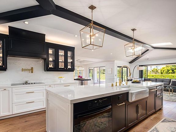 Nestled in a peaceful and central location in the charming and very desirable Covenant “Village” in Rancho Santa Fe. This single level residence has been rebuilt (completed 2021) using the highest quality materials and finishes selected by top designers. As you enter the property, walls of glass open to the outdoors making the indoors and outdoors become seamless. The kitchen/family room, the heart of the home, is open and airy. At the center of the kitchen is a long island with ample seating and storage, flanked with light grained quartz countertops, high quality appliances, furniture grade cabinetry, satin-brass accents, hardware and faucets, and a banquette for informal dining. There is an abundance of natural light throughout. The formal dining room, with floor to ceiling windows, has custom designed, built-in lighted brass and glass cabinetry for storage and display. There is also a bar with icemaker that is glimmering with glass tile, gold grout, and brass details. The formal living room has a brick fireplace and a wall of glass with views to the private back yard that has ample room for entertaining or everyday enjoyment. There are 4 bedrooms including the luxurious primary suite. The primary suite has doors leading outside, an accent wall of brick, painted white for texture and warmth, his large closet and her dressing room meticulously detailed out, luxurious spa bath with beautiful stone slabs, tile work, light fixtures and hardware. There are 2 bedrooms that share a large bathroom and a chic powder room in black with white accents. In addition, there is a large guest suite with full bath, coffee bar and a door leading to the outdoors-perfect for a guest or a secondary primary suite. The outdoor space is private and quite with a deck for lounging or entertaining, a spa for relaxing, and beautiful landscape. Oversized laundry room. Hardwood floors. Custom lighting. There is room for a pool. The property is fenced in the rear. Large garage for 4 vehicles with an abundance of storage. You are within walking distance to the charming and historical “village” with fine restaurants, coffee shops, post office, shopping, The RSF Inn, and acclaimed Roger Rowe schools. Easy access to the trail system and the RSF Golf and Tennis Clubs. This is a true treasure. Not one detail has been overlooked.
