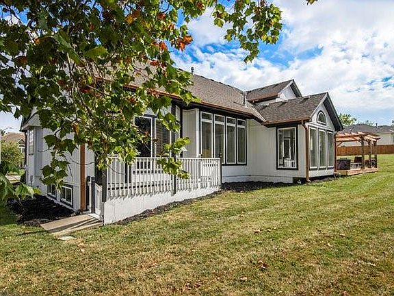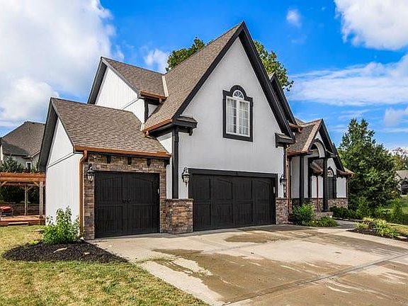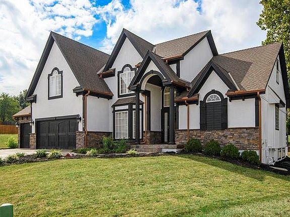 This 5 bedroom, 4.5 bathroom home offers over 3,343 square feet and is conveniently located minutes from shopping, dining, and downtown Kansas City. Features include a beautiful kitchen with updated cabinets, three living areas, two dining spaces, a dedicated theater room, a full bar in the basement, and a gym room downstairs. The home also includes a non-conforming bedroom upstairs, vaulted ceilings, well-appointed bathrooms, a walkout basement, a wooden pergola with deck, and a three-car garage on a quiet cul-de-sac with a wide driveway.