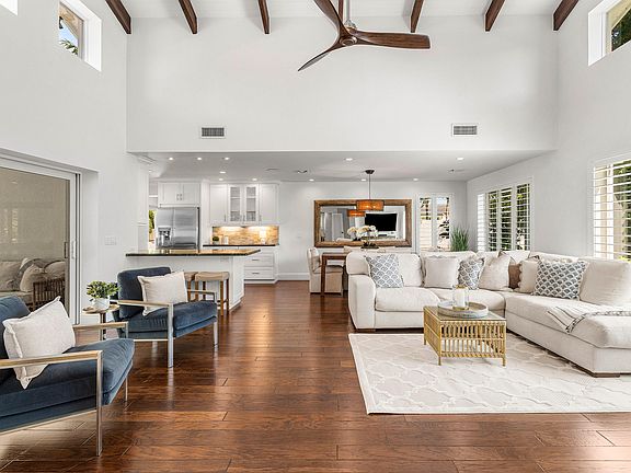 RARE OPPORTUNITY: RENOVATED COASTAL GEM UNDER $2M WITH DEEDED BEACH ACCESSStep into coastal luxury just steps from the sand in this fully renovated Bermuda-style residence, ideally located on a quiet cul-de-sac in Ocean Ridge. Set on a lush corner lot and offering deeded beach access via charming Old Ocean Blvd, this move-in ready home is a true rarity in today's market--especially with 17-foot vaulted ceilings, an open-concept layout, and designer finishes throughout.The great room features dramatic wood-beamed ceilings and retractable glass sliders that blur the lines between indoor and outdoor living. A sleek, modern kitchen is equipped with granite countertops, stainless appliances, breakfast bar, and under-cabinet lighting. The spacious primary suite boasts double vanities, a seven-foot shower, walk-in closet, and private patio access.