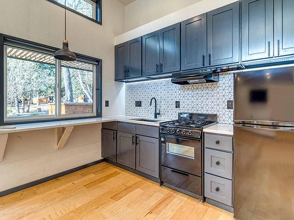 Welcome to your park-like surroundings and adorable home located in the cottage community of Hiatus with a HES of 10!! Unit 8 is situated perfectly facing the community private ponds and just a few steps to your designated parking. Hiatus features pathways, ponds, gardens, and firepits for your use and to extend your living area, all maintained by the HOA. Inside you'll find natural light, beautiful colors and creative solutions for simple living. Wood flooring, tile showers, marble countertops, and built ins add to the appeal of this well constructed home. Schedule your showing today.