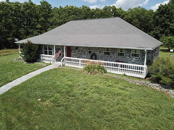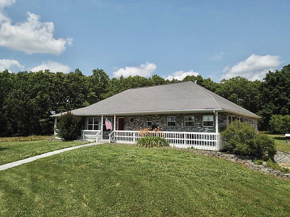 Amazing 4 bedroom 2.5 bath all brick home that is private and secluded on 42 picturesque acres! This custom built home has hardwood floors throughout the main living areas, office and kitchen. The open living room has vaulted ceilings with large open beam ceilings that give it a great cabin feel. With plenty of room to entertain it flows well into the kitchen and dining area. The kitchen has tons of cabinets, tiled counter tops, gas cook top, wall oven, fridge and large walk in pantry. There is a mud room with plenty of room for a deep freezer and it leads out to one of the two back porches. The master bedroom is a very good size with double doors to the other porch, nice walk in closet along with a new double vanity, soaking tub and huge tiled walk in shower with two shower heads!! Bedrooms 2 and 3 on the main level are a great size with tons of windows for natural light and large closets. Also upstairs is an updated laundry room with all new cabinets and a utility sink. Last but not least is the office on the main floor that could also be a 5th bedroom. Downstairs there is another bedroom with a half bathroom, tons of storage space, large work shop area and utility closet. Outside there is a small metal storage building, older barn and 1 pond in the front of the property. The open ground has been fertilized and planted yearly with soybeans, wheat and clover for prime deer and turkey hunting! Tons of wildlife on this property with a great mix of open and wooded land.