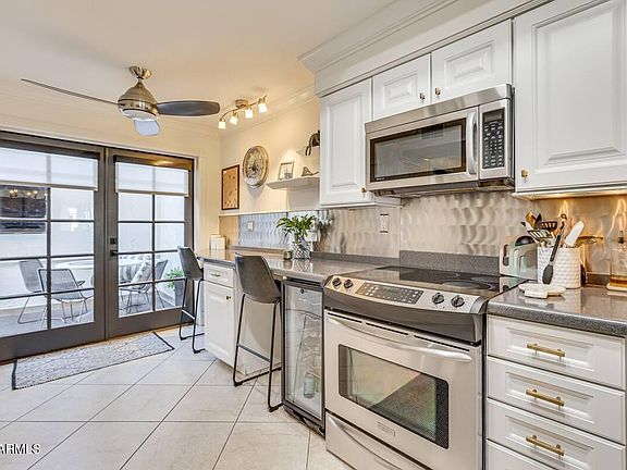 This stunning townhome in gated Biltmore Gates overlooks the 12th green of the Arizona Biltmore Links Golf Course! Beautifully updated with hardwood floors upstairs, elegant bathrooms & sophisticated design throughout, you'll wake up to breathtaking golf & mountain views from your private bedroom patio. Entertain on the charming breakfast patio or unwind on the spectacular back patio with panoramic golf course vistas & Camelback views. Custom closets provide ample storage & a murphy bed/desk combo makes sure you can wisely use the second bedroom. This gem combines resort-style living with modern elegance in one of Arizona's most coveted communities. Prime location, stunning views, stylish updates - it's where luxury meets tranquility! Don't miss your opportunity to own a piece of paradise