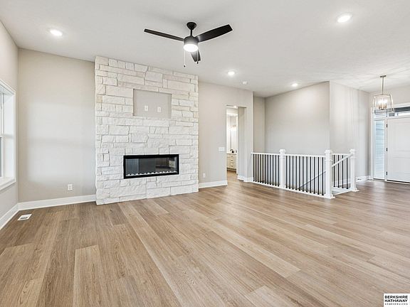 AMA - Fantastic Catalina floor plan built by The Home Company with over 2,000 sq ft on the main, featuring 4 beds, 3 baths & a spacious open floor plan. Stunning electric linear fireplace with floor-to-ceiling stone anchors the living room. Gourmet kitchen boasts gas appliances, quartz countertops, batwing island, pantry & 3x12 subway tile. Dining area opens to a covered TimberTech deck overlooking a walkout lot. Primary suite offers a tray box ceiling, walk-in shower & closet. Finished LL includes 4th bedroom, rec room, ¾ bath, wet bar & picture windows. Extended patio & sprinkler system. Under construction-completion Dec 2025.