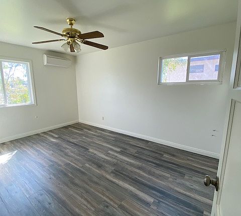 The unit has wall heating, and ceiling fans. Dual-Pane windows, washer and dryer hook-ups, fenced backyard, gardener service provided. Parking in 1-car garage, plus additional off street parking.