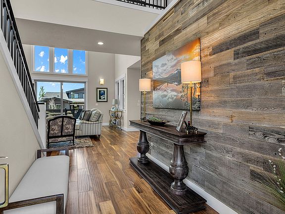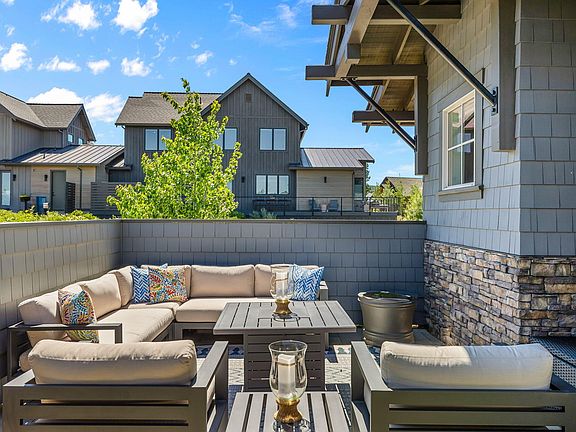 Stunning Cascade Mountain view home perfectly blends NW contemporary design with nature's splendor. Bathed in natural light, the open floorplan features soaring ceilings & expansive windows framing breathtaking views. The light-filled great room impresses w/ stone fireplace & acacia wood flooring providing a warm & an inviting atmosphere. Award-winning kitchen is a culinary delight, with large granite island w/ prep sink, quartz counters, top-of-the-line appliances, & spacious walk-in pantry. Dining area opens seamlessly to paver patio, perfect for entertaining or enjoying serene sunsets. Patio is also accessible from luxurious main-level primary suite, offering a tranquil haven w/spa-worthy bath featuring soaking tub, make-up vanity, walk-in shower, dual sinks & generous walk-in closet. Upstairs, two en-suite guest rooms are connected by a sky bridge, each featuring private balconies w/ sweeping mountain views. Fully enclosed courtyard provides for outdoor relaxation & entertaining.