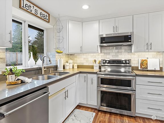 Nestled in a quiet cul-de-sac, this beautifully updated rambler is set on an expansive lot with plenty of room for outdoor living and RV parking. Step inside to discover a home that’s been thoughtfully refreshed throughout, featuring modern quartz countertops, a spacious island, and updated appliances in the kitchen. New flooring, fresh paint, and upgraded trim add a touch of elegance to every room. Step outside to the expansive, fully fenced backyard with a deck, gazebo and handy storage shed – ideal for outdoor fun and entertaining. Enjoy nearby walking trails and parks. Plus, you'll appreciate the quick access to Hwy 9, I-5, and a variety of local amenities. Don't miss this move-in-ready gem that combines comfort and style!
