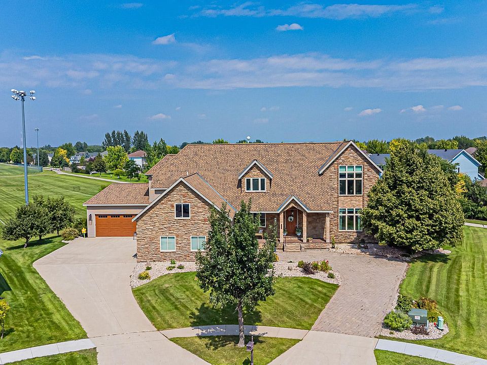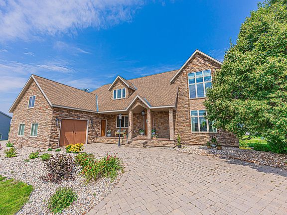 Step inside to a grand two-story foyer featuring a timeless curved staircase and rich Brazilian cherry woodwork. The main level is thoughtfully designed with a formal dining room, spacious living room, custom kitchen with eat-in area, den, and a dramatic two-story family room filled with natural light. Upstairs, you'll find four generously sized bedrooms, each with its own walk-in closet. The luxurious primary suite boasts vaulted ceilings, a large walk-in closet, and a spa-like bathroom with soaking tub and glass/tile shower. The finished lower level offers 9-foot ceilings, family room, a home theater, game room and bonus music room with an additional large bedroom. Ideal for entertaining or multi-generational living. Additional highlights include a 5-stall heated garage with drive-through, heated driveway, and premium finishes throughout. Don’t miss your chance to own this remarkable home. Schedule your private tour today!