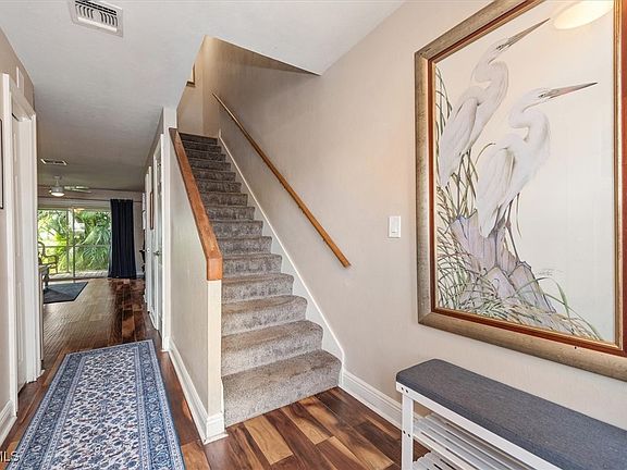 Boating Community! Island Park Woods features a boat ramp for residents only with *Direct Gulf Access* and *Boat Storage* THIS UNIT DID NOT FLOOD DURING ANY HURRICANES PER THE SELLER! Located in South Fort Myers you will be centrally located to all amenities. This 2 story town home features 2 bedrooms (both upstairs) and 1.5 Baths. 2025 HOT WATER HEATER. 2023 NEW A/C. 2 Parking Spots (1 covered, 1 open). Wood Floor throughout and whole house softening system with RO in the kitchen. The laundry is located on the screened back patio. Among other things the HOA fee includes flood and home owners insurance, lawn and land maintenance, and all rec facilities including the community pool and boat ramp.