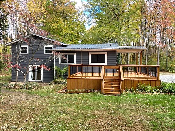 This Updated 4-Level Split sits on just over 8 Park-like Secluded Acres in Leroy Twp! Set back off the road, this warm and inviting home includes 3 Bedrooms, 2 Full Baths with neutral decor throughout. Covered front porch welcomes you into the vaulted Living Room & Dining Room combination with newer wood vinyl plank flooring. Eat-in Kitchen with breakfast bar & all appliances stay. Second floor includes Master Bedroom, 2 additional bedrooms with newer carpeting. Remodeled Full Bath with double sink vanity & quartz countertop. Lower level Family Room with pellet stove for additional heat source & slider to backyard to concrete patio & backyard, large Laundry Room & 2nd full bath. Basement includes finished Rec Room with glass block windows. Central air. HWT 2024. Wired for generator. Freshly painted exterior. Metal roof. This secluded property includes mature trees with large newer deck overlooking deep heavily wooded backyard & 30x40 Outbuilding/Garage with overhang, 3 overhead doors, plenty of room to park all your toys or ideal for the car collector or hobbyist. Ready for a new family to make this home their own! Just minutes to freeway access! Riverside Schools.