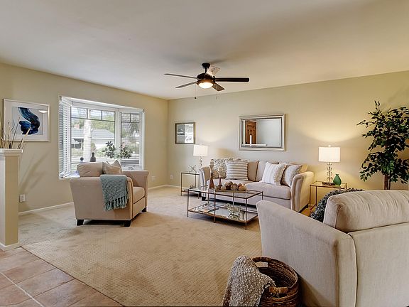 Move-in ready! You will love this 4 bedroom 2 bath updated and well maintained home. Great curb appeal with landscaped front yard, new exterior paint, dual pane windows, brand new roof, stone work and stamped concrete driveway that leads to an oversized garage with room for workshop or storage. The backyard is private and nicely landscaped with a covered patio with custom lighting for entertaining day or night. The interior has new paint and carpet, a nice floor plan with mountain views from the living room, nice kitchen with breakfast bar, and dining area with wood burning fireplace. The master bedroom features a walk-in closet and a sliding door to the outside. Move in just in time for the holidays!