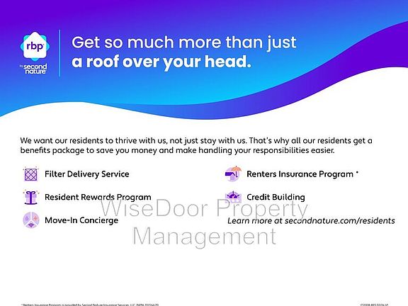 Disclosure: All WiseDoor Property Management residents are enrolled in the Resident Benefits Package (RBP) for $31.95/month or $41.95/month (+ HVAC Quarterly Filter Deliveries) both packages include liability insurance, credit building to help boost the resident's credit score with timely rent payments, move-in concierge service making utility connection and home service setup a breeze during your move-in, our best-in-class resident rewards program, and much more! More details upon application.