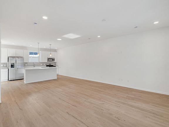 Welcome home to the Wyatt townhome! This home offers a spacious main floor with 9' ceilings! The kitchen features a large kitchen island with overhang, an abundance of storage with a 5' pantry, and stainless-steel kitchen appliances including a refrigerator. There are 42" white Alpine cabinets, custom tiled backsplash, and quartz countertops. Off the kitchen you willl find the private fenced in patio that leads to the oversized 2 car garage. There are two spacious bedrooms and laundry with washer and gas dryer included on the 2nd floor. Luxury vinyl plank flooring throughout the main living area and upgraded carpet on the 2nd floor. The Ring doorbell, and year-round low maintenance landscaping w/irrigation complete this move in ready townhome. Enjoy peace of mind with this high-performance energy efficient homes with a 10-year structural warranty, 4-year workmanship on the roof, windows that are Low E with Argon Gas and Energy Star North Central (NC) Rating, and includes our Industry-Best Customer Care Program. Visit Rivertrace - a great place to call "home!"