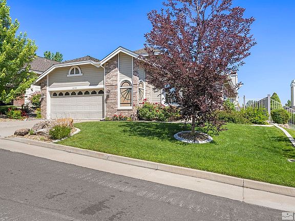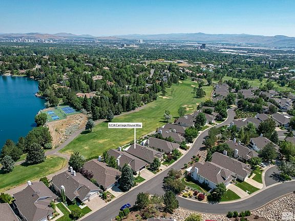 One of the best locations within the highly sought after Carriage House community. The beautifully cared for property has breathtaking views of Lake Stanley, the 16th fairway of Lakeridge Golf Course, and downtown Reno. The lovely, single story home features an open great room, kitchen and family room, large primary suite, gorgeous hard wood floors, and expansive covered patio. Carriage House is a gated community within close proximity to downtown Reno and The Village at Rancharrah.
