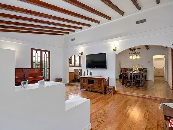 Beautifully remodeled and charismatic Spanish home in wonderful Beverly Grove neighborhood. The home welcomes you into the family sitting room with high beam ceilings and cozy fireplace,opening into dining room and gourmet kitchen, with built-in appliances and charming breakfast nook. Formal living room offers vaulted ceilings with amazing wood beams, grand fireplace and pictures que front window. 3 bedrooms and 3 gorgeous baths. Master suite has additional den/office. Step outside to a lovely & private back yard with 2 patios shaded with pergolas. Garage has been converted to guest house, with kitchen and bath. Amazing location, steps from the Grove, Farmer's Market, Beverly Center, Cedar Sinai.