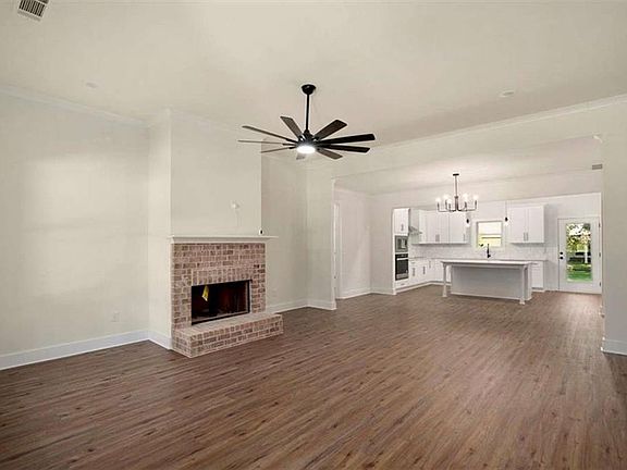 Wood-burning fireplaceSpacious islandSplit floor planOpen-concept layoutOversized pantryWalk-in closetOversized covered back porch