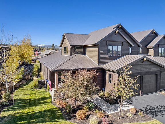 Elegance meets sophistication in this stunning Triple Knot townhome. A coveted location overlooking lush greenspace and not one, but two idyllic ponds along with Cascade views. Appointed with all the amenities you'd expect including modern cabinetry and stunning hardwood floors. On the main level you'll find a primary suite, office, laundry, and great room with a handsome floor to ceiling fireplace offset by generous windows and warm wood beam accents. There are two additional suites upstairs, the south suite offers awesome Cascade views while the east captures the first morning light. The primary patio is adjacent to a lovely pond in full display of fall colors. This is truly an exquisite home in an exceptional location.