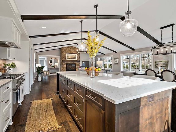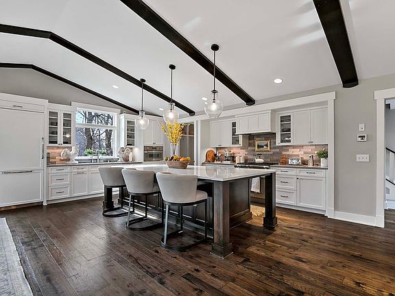 Welcome to this exceptional, custom-designed home built in 2018, where craftsmanship and attention to detail shine in every corner. Nestled on a spacious 1.6-acre lot next to the Lake Minnetonka LRT trail where you can walk or ride your bikes to Excelsior or Victoria in only a few minutes! This lake country rustic luxury home offers a perfect blend of sophistication, family friendly functionality, and timeless design. Step inside and be captivated by the vaulted and beamed great room, highlighted by a floor-to-ceiling hand-placed stacked stone fireplace and hearth. Hand-selected designer light fixtures. The warmth of mahogany-stained wood floors flows seamlessly throughout the main living areas, complemented by custom cabinetry and millwork that add character and charm. At the heart of the home, the gourmet kitchen is a dream come true, featuring a massive 5’x11’ granite island, quartz countertops, and top-of-the-line Thermador stainless steel appliances. Every detail, from the handcrafted tilework in the bathrooms to the high-end carpeting in the bedrooms, reflects thoughtful design and quality craftsmanship. The home is wired for full-house internet, cable, and over the air TV, with a data closet conveniently tucked under the entryway stairs in addition to a powered TV antenna in the attic. The main level boasts three bedrooms, including a primary suite, as well as a laundry and mudroom cubbies for added convenience. Upstairs, you'll find two oversized bedrooms with walk-in closets and organizers, plus a full bath. The bonus room over the garage offers endless possibilities as a game room, guest retreat, or private suite, complete with its own ¾ bath and expansive walk-in closet. Outdoor living is just as impressive, with a 12’x17’ composite deck perfect for relaxing, a 20’x20’ custom stone fire pit with flagstone pavers and internal lighting, custom landscaping by Mangold Horticulture with all native flowers and plants along with tree lighting. More than enough space to enjoy the natural surroundings. The oversized garage (24' deep x 32' wide) ensures ample storage for all your toys and outdoor gear. This remarkable property offers the perfect blend of elegance, comfort, and practicality—all in the sought-after Minnetonka School District with the best rated elementary school in Minnesota!