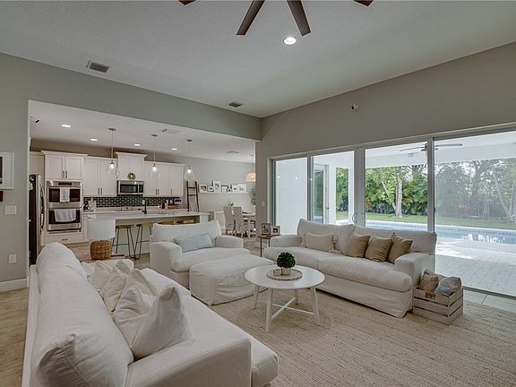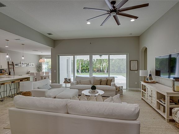 Gated community, just a few minutes from Vero's finest public golf course, 15 minutes to beachside restaurants, shops, and dining. Close to the mall and shopping centers. The home is truly turnkey, featuring high-end furnishings and touches. Island kitchen and open floorplan allow for exceptional entertaining. Pocket sliders open up to the heated pool and large lanai. Absolute Paradise!