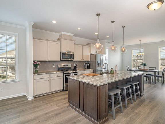 A former Parade of Homes entry, this Chesapeake Homes End unit features recessed lighting, LVP flooring, SS appliances, large kitchen island, fully finished 2 car garage, and plenty of natural light. Located in highly desired 5401 North, this home is walkable to the community pool/clubhouse, fitness center, community garden, coffee shop, brewery, restaurant, dog groomer, Neuse River Greenway access, walking trails, dog park, and more!