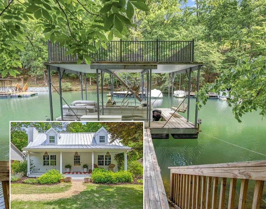 Welcome to this beautifully renovated Lake Lanier home, a rare combination of timeless charm and upscale designer finishes, complete with a single-slip deep water dock conveniently located near South Lake Lanier attractions & dining. From the moment you approach the home, Serena and Lily front porch lighting greets you and sets a precedent for the designer lighting package found throughout. Step inside to discover the character and upgrades around every corner, off the entry way find the dining room and continue to the kitchen that is open to the sitting room, spacious enough to accommodate a kitchen table and a living room amongst the wall of windows and French doors, flooding the room with natural light. The kitchen offers white cabinetry and floating shelves for convenience and storage, in addition to the pantry. The island is the perfect size for a chef's workspace. The back deck off the kitchen invites you to enjoy the private backyard setting. Additionally on the main level, you will find a bedroom that can serve as a study or media room with built ins and a fireplace, and a full bathroom updated to reflect the character and charm found throughout the home with a claw foot tub and designer lighting. Upstairs has been reimagined and renovated to feature two more bedrooms, each with private en-suites. The master suite to the right of the landing is spacious and features window bench seating. The en-suite is adorned in Restoration Hardware finishes and upgrades, including the clawfoot tub with both tub and shower fixtures and double vanity, framed in with windows overlooking the backyard. The additional upstairs bedroom suite is across the landing and offers size and ample natural light, with an en-suite that has built in storage and shelving, and a custom tiled shower. The terrace level was thoughtfully crafted and renovated with guests and entertaining in mind. Blue stone tile flooring is found throughout the entire level and continues to the back patio for a seamless blend into outdoor living space, highlighted by an expansive wall of four sets of French doors. Versatility and function throughout every inch of the terrace level, find space to accommodate a living room, dining room, and more all while accommodating guest sleeping quarters with a built-in twin-size bunk and a pull-down Queen-size Murphy bed. Pre-wired for Dolby 5.1 surround sound, everything has been considered. The full bathroom showcases a walk-in floor to ceiling tiled shower. The hidden storage closet is craft-fully tucked behind a bookcase. The finishes and craftsmanship go beyond aesthetics, with updated and replaced exterior cypress hardwood siding, insulation, and windows, along with the addition of the metal roof. Outside, the grounds have been masterfully re-landscaped with a stone wall, privacy fencing, pea gravel driveway, irrigation system. Amongst the lush Zeon Zoysia turf, find numerous established blooming plants and blossoms. The footprint allows and has been thought-out for future expansion, with space reserved for a garage or carport and a potential three-story addition. The deep water dock is equipped with electrical and pre-wired for path lighting, in addition to water connection. The single slip with a party deck provides space to dine and entertain while enjoying the view to open water. The cove position is ideal, with deep water and protection from boat traffic, yet close to open water. With Lake Lanier access at your back door, there's no shortage of activities, just a short boat ride to Aqualand Marina/Pigtails Restaurant, and easy access to other marinas, dining, and Lake Lanier Islands/Margaritaville. By car, approximately 3 miles from downtown Flowery Branch with shopping and dining.