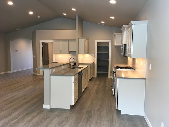 Welcome home to this beautiful Arena Acres single level home complete with luxury amenities. The inviting open concept provides the perfect place to retreat to after a long day. The living area features vaulted ceilings, gas fireplace with mantel, lots of windows allowing ample natural light in, recessed lighting and dining area for a table and chairs. Included in the open layout is the chef's kitchen which features a large pantry, custom cabinetry and backsplash, gas stove, built in microwave, island with additional prep space, cabinets and farmhouse sink. Wine lovers will love the built in wine bar and wine rack - perfect for entertaining guest! Connected to the kitchen is the laundry room, complete with sink, extra storage space, washer and dryer. The 2 bedrooms positioned at the front of the house have carpet, large windows, recessed lighting, and custom blinds. The shared guest bathroom features a tub/shower combo, tiled floor, and vanity with additional cabinet storage. The primary suite includes a large closet, soak tub, enclosed shower, dual sink vanities with additional storage space, great lighting and entrance to the backyard. Relax on those beautiful Bend nights on the back patio, big enough for a table chairs. Backyard features also include grass lawn, retaining wall with fenced yard for privacy, and graveled side yard. Don't worry about having to mow - Lawn service is included! Stay cool in the summer with central A/C. This home is in a great location, close to schools, parks, 10 minutes from Downtown and only 5 minutes to the Old Mill!
