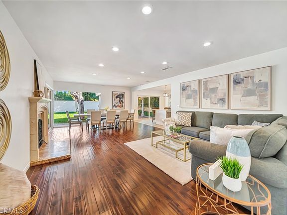IMPECCABLE ONE STORY, WOODLAND HILLS POOL HOME!!! This gorgeous oasis is turn-key and stunning. Featuring fresh paint both inside and out, wood floors, newer windows and sliding glass doors, remodeled bathrooms, a renovated chef's kitchen boasting quartz counter tops, newer cabinetry and appliances. A gorgeous breakfast bar overlooking both the living room and fantastic backyard. Find 4 spacious bedrooms including an oversized primary suite with a walk-in closet, a great family room (which can be used as an optional 5th bedroom!). This home is light and bright, boasting an open concept vibe throughout. Outside find an entertainer's yard, built-in bbq area, multiple covered patios, swimming pool, spa, natural grass and plenty of lounge areas all around. This home features a designated laundry room, 2 car attached garage, tankless water heater+++ Located walking distance from places of worship, supermarkets and more.