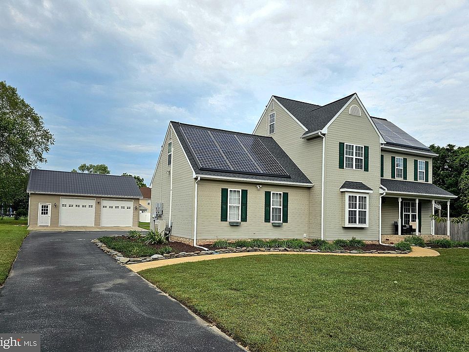 Welcome to 6136 Oxbridge Drive, a beautifully maintained home in the sought-after Willow Creek community, offering nearly 2,000 square feet of living space on a private one-acre lot. With three bedrooms, two and a half baths, and a versatile bonus room, this property blends modern updates with flexible living. The main level was thoughtfully renovated in 2015, featuring a bright kitchen with classic white cabinetry, granite countertops, recessed lighting, and updated plumbing. Hardwood floors and fresh carpet (2018) enhance the inviting layout, while the spacious primary suite upstairs includes a large walk-in closet and private bath. A walk-up attic adds opportunity for future expansion, already roughed in for a mini-split system (conveyed with the sale) and supplied with drywall to complete the space. This home is move-in ready with a new roof (2018), water heater (2023), and leased solar panels (2018) that help keep electric bills low. Outdoor living shines with a welcoming front porch, large rear deck for entertaining, a fire pit, fresh landscaping, and an irrigation system fed by its own well. Along with an attached garage, the property includes a 32’x32’ detached garage—perfect for storage, hobbies, or even a home-based business. Set within Willow Creek, a desirable neighborhood with low HOA fees, this home offers both charm and convenience. Just minutes from Salisbury University, downtown Salisbury, restaurants, and shopping, you’ll enjoy the best of community living with everyday accessibility