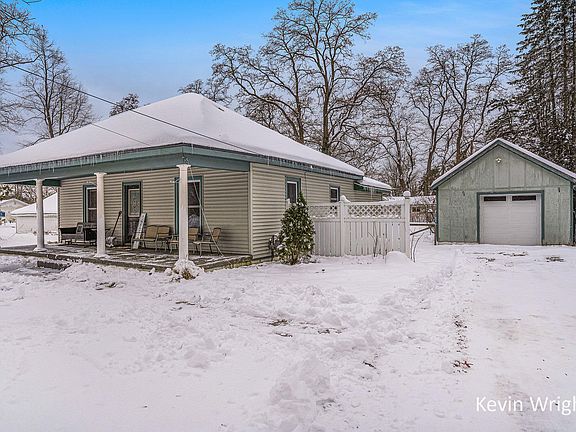Charming and move-in ready! This 2-bedroom, 1-bath home offers comfortable main-floor living with a large kitchen boasting plenty of storage space, cozy bedrooms with hardwood floors, and convenient main-floor laundry. Enjoy quiet mornings on the welcoming front porch and appreciate the added storage and parking offered by the detached 1-stall garage. Located in the sought-after Reeths-Puffer School District, this home is a wonderful find! Buyer and buyers agent to verify all information.