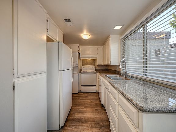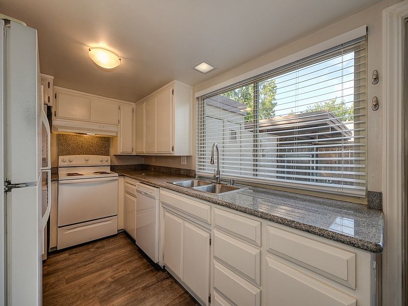 This beautifully updated townhouse features fresh paint, new flooring, and a spacious kitchen with plenty of cabinets plus a cozy dining nook. The bright living area is perfect for relaxing, with a convenient half bath and laundry downstairs complete with a newer washer and dryer. Step outside to enjoy your large private fenced patio with extra storage, and park with ease thanks to one covered and one uncovered space located right outside your patio gate.