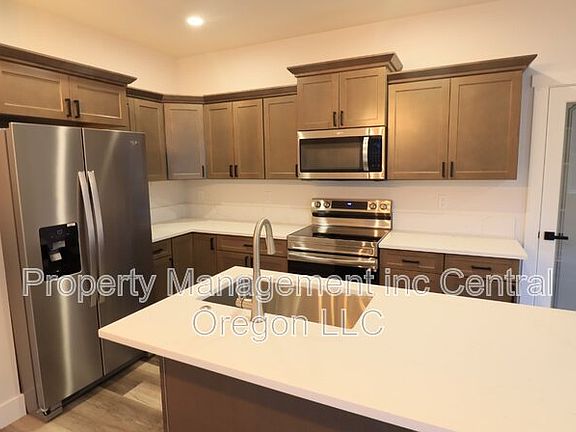 This Townhome is close to the Old Mill district and everything Bend has to offer. 4 bedrooms and 3 bathrooms and a bright open living space for your enjoyment. The modern kitchen opens up to a dining area and a private outdoor deck for bbq and entertainment. The open living concept with a fireplace in the living room adds to the "welcome feeling" of the home. The house offers a main bedroom on the first floor as well as a half bath, another main bedroom on the second floor with two more bedrooms and another full bathroom. The spacious laundry room is also conveniently located on the second floor with full hook ups, and soaking sink, and extra cabinets. Each unit comes with a dedicated parking spot. Additional parking across the street and off street.