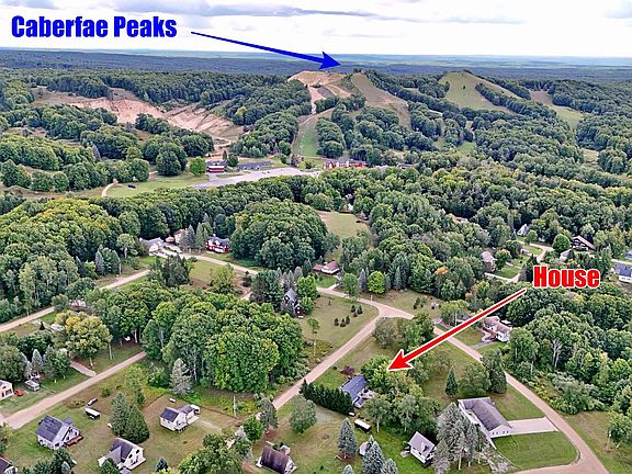 Rare find in Caberfae Subdivision! This beautiful 3-bedroom, 2-bath ranch-style mobile home features an attached 2-car garage and desirable single-level living—all within walking distance to the slopes and golf course. Situated on a large lot, the property offers a welcoming front porch, a back patio for entertaining, and a shed for extra storage. Inside, the split floor plan places the primary suite with private bath on one side, and two additional bedrooms and bath on the other. Highlights include a stunning stone gas fireplace, central air, and a sprinkler system. Located in a fantastic recreational area with snowmobile trails, hunting, lakes, and rivers nearby. Priced to sell quickly—don't miss this opportunity! Buyer/Buyer's agent to verify all information.