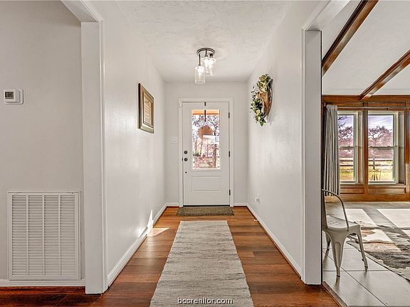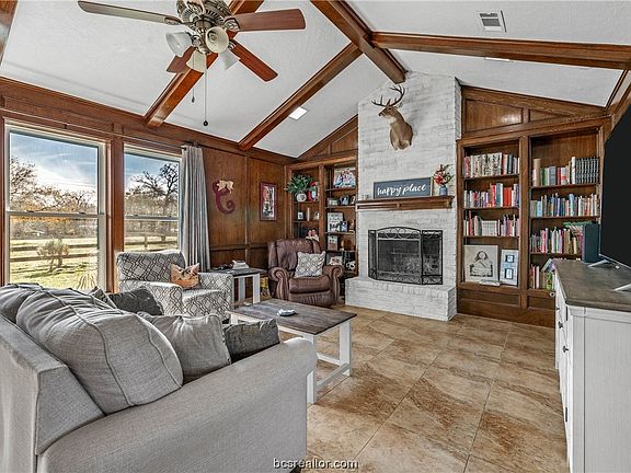 Situated on a sprawling 5.7-acre tract in the coveted Anderson-Shiro School District, the newly remodeled three bedroom, two bath home offers a wonderful opportunity for a family or a homebase business location. As you enter the home, you’re welcomed by the beautiful living room framed by a woodburning fireplace and large picture windows. The living room opens to the adjoining dining and kitchen creating a wonderful space for everyday living and gatherings. The oversized laundry room provides a great workspace for the home with direct access to both the carport and backyard. Renovations include: a fully renovated kitchen, dining, laundry room, primary and secondary baths, flooring, interior and exterior paint, windows, skylight, and gutters. Unrestricted and located 10 minutes from south College Station, the property, offers full perimeter and crossing fencing, a beautiful pond, storage building, run-in shed, and barn suitable for livestock and equipment.