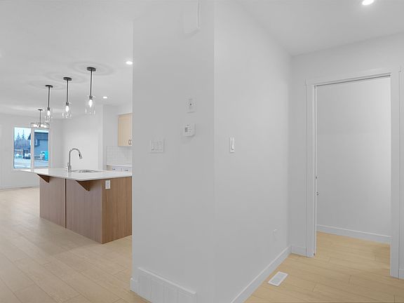 Welcome to this brand new half duplex the “Laniney D” Built by the award winning builder Pacesetter homes and is located in one of Edmonton's newest north east communities of Marquis. With over 1690 square Feet, this opportunity is perfect for a young family or young couple. Your main floor as you enter has a large living area with a center kitchen perfect for entertaining that's wide open to the dining/nook area. The main floor has luxury vinyl plank through and an upgraded kitchen with quartz counter tops. The second level has a the 3 good size bedrooms and 2 full bathrooms with the stackable laundry area and large centered bonus room. This duplex also comes with a double attached garage and a side separate entrance perfect for future basement development. *** Photo used is of an artist rendering , home is under construction and will be complete by November of this year***