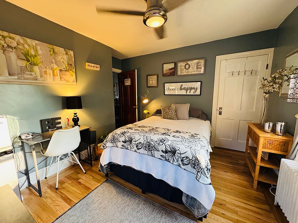 Private bedroom in 3 bedroom apt with married couple & single gentleman. Looking for single tenant, no couples. We are all working and early to bed/early risers. Quiet household. Non-smokers (420 allowed outside). Room is fully furnished with many amenities. All utilities incl. Shared areas incl kitchen, pantry, 1 full bath & add'l bathroom in basement. Beautiful yard & back porch for peaceful oasis in the city. Close to PC, I95, restaurants & shopping. On a public bus route. Street parking. Month to month