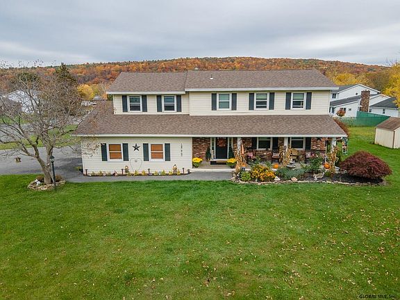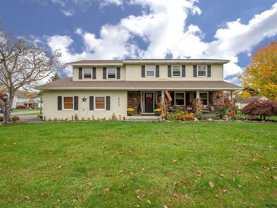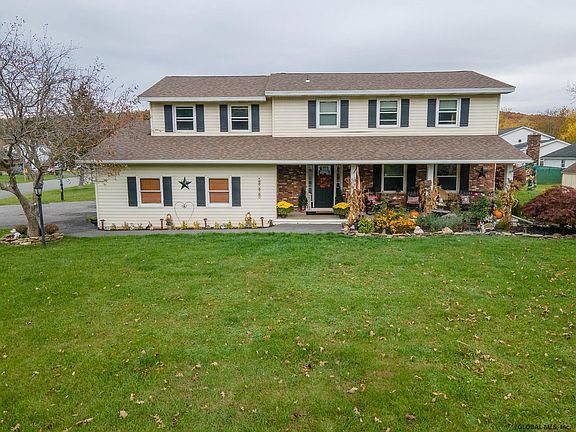 Move right into this 4 BR,3 1/2 bath Colonial. Open country kitchen w/granite counter tops. Extremely large Cozy Great Room w/cathedral ceilings. 2 master suite BR w/ full bath/new vanities w/granite. Oversized walk-in closet in the main master. Generous size closets in the remaining BR's. Finished basement w/storage. Enjoy your private fenced in Island Oasis, inground pool, gazebo, patio (just recently redone). (Hot Tub Negotiable). As you sit on your front porch this time of year w/your coffee, you can look out over the beautiful Mountain tops Fall Foliage. New roof (April 2020) and water softener. Schalmont schools. (Fish Tank will be removed before closing and wall fixed. This home is READY TO GO!!