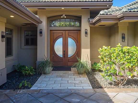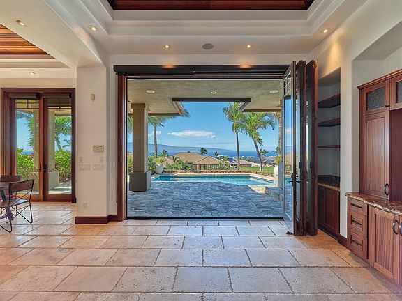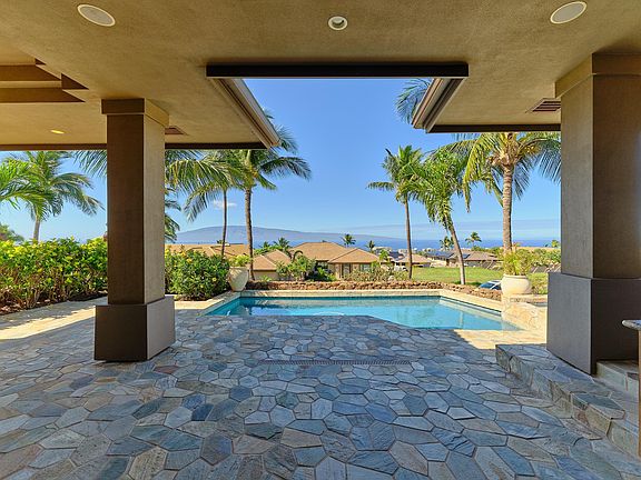 Perched on the top row of the Lanikeha community located within the gates of the Kaanapali Golf Estates, this single story home offers stunning ocean views from the pool deck, the kitchen, the living room, the primary bedroom, and even the primary shower! You will also have views of the islands of Lanai and Molokai and all without walking up a staircase. The architectural details of this home with its 10-14 ft ceilings with African Mahogany wood insets will re-assure you that this home was built as a primary home and not a spec home. This tropical home has 4 bedrooms and 3.5 bathrooms and is surrounded by a 6 foot rock wall for your security. Three of the bedrooms are en-suite. It also comes with 40 owned solar panels on the roof, a new water heater, new Thermador appliances, new interior paint and newer exterior paint. The Lanikeha Clubhouse is exclusive to Lanikeha Homeowners and is a great venue for birthday parties and your family events. Home is vacant and easy to view. Listor is owner