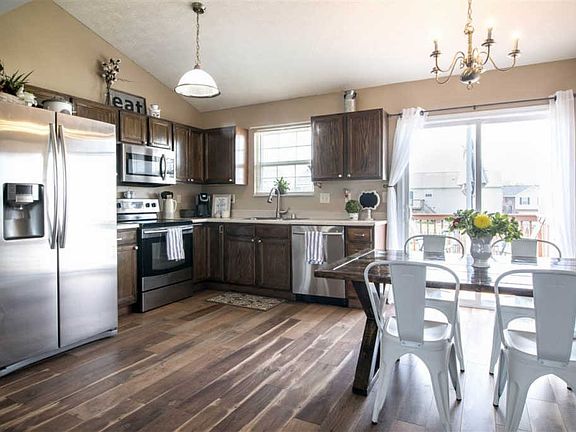 This adorbale home is sure to please! Move in ready, very well maintained 3 bedrm, 2 full bath home, features new laminate flooring throughout kitchen and living room. Very tastefully decorated. Master bedrm has large walk-in closet and master bath. Flat fenced in yard features fire pit, shed and walk out to the deck. Walk to the community playground and pond in peaceful setting! Come see it today