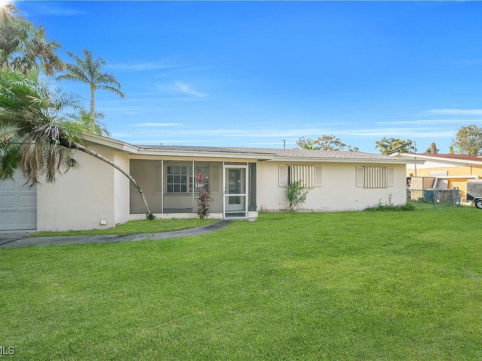 Beautiful home in Fort Myers! It features 3 bedrooms and 2 bathrooms. Modern kitchen with stunning quartz countertops. The bathrooms are updated for a sleek look, tile throughout the property. The living-room area has accent brick wall "entertainment set up" and a cozy fireplace. It's move-in ready and also includes an extra kitchen in the lanai area. Come take a look!