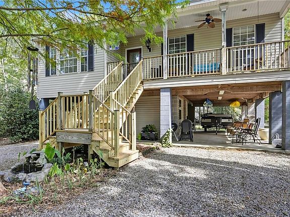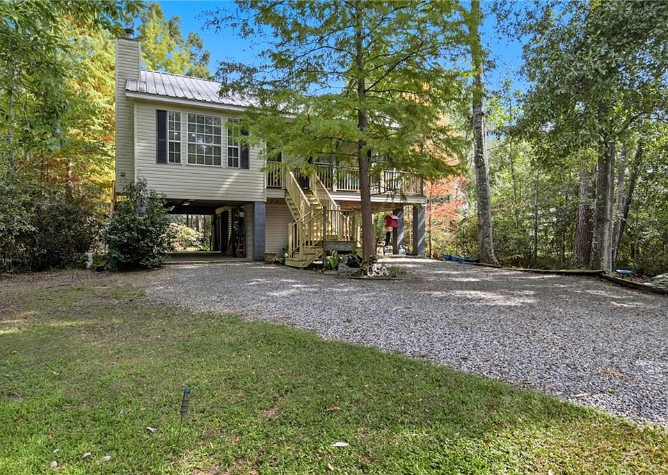 Satsuma and blueberry treesCovered carportAmple pantry spaceNestled among the treesVersatile workshop spaceSerene and private settingRaised acadian-style home