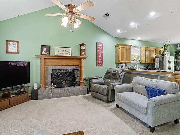 Inside, you’ll find 3 spacious bedrooms and 2 full baths. The open-concept kitchen flows seamlessly into the great room, highlighted by a stunning cathedral ceiling and a cozy fireplace. The kitchen boasts a large island, ample pantry space, and a dedicated dining area, for both everyday living and entertaining.