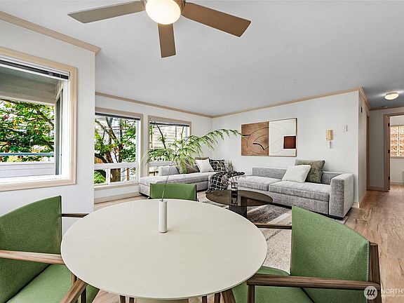 Enjoy living in one of Seattle's best Neighborhoods with an unbeatable location close to Downtown, South Lake Union, University of Washington, and Capitol Hill. Walkable to great Restaurants, Coffee, and the Shores of Lake Union. Bright Northwest corner 2 Bedroom with abundant Windows and excellent natural Light. Private, covered Deck off the Living Room. Brand-new Paint, LVP Flooring, & Baseboard Trim throughout. Kitchen has brand-new Microwave & White Subway Tile backsplash. New Ceiling Fan with Remote. In-unit Washer/Dryer. Gated Garage parking space included. Interior hallways just repainted. The building has 2 Guest parking spaces on the Alley & convenient access to I-5. Affordable HOA Dues & No Rent Cap. Pets are welcome.