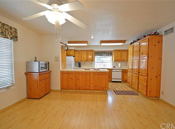 This 3 bedroom/2 bath SINGLE LEVEL home has a nice large flat lot with plenty of room for a pool or sport court. There is a spacious covered patio area to BBQ or for entertaining. The kitchen has custom "knotty pine" cabinetry with lots of counter workspace and opens up to the dining area. The living room is spacious and has a newer dual pane glass windows/door to the yard. Brick fireplace in the living room. The bedrooms are well sized with mirrored sliding closet doors. Ceiling fans in all the bedrooms, living and dining room. Easy care wood laminate flooring throughout, with ceramic tile in the bathrooms. Upgraded double entry door with glass inserts. Located on a quiet cul-de-sac.