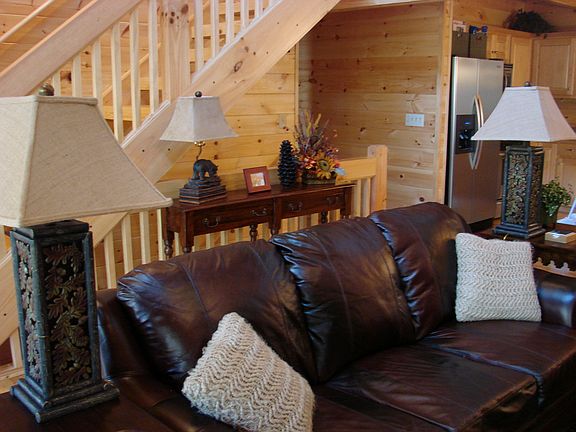 River Frontage you can walk to from your cabin in the woods! A Fly fisherman's retreat! It has been a beloved retreat for family and friends and the home has a very successful rental history as Koala River Lodge. Relax by the firepit on the bank of the river, enjoy the view from the lower level hot tub, or from the upper level deck next to your outdoor fireplace. Cozy up by the fireplace on the main level as the wall of windows brings the outside indoors. Or breathe in the fresh air by the outdoor fireplace! Wood trim and beams adorn this spacious home to give it a cozy "cabin feel". Each floor has it's own private bedroom and full bath. The lower level has a separate sitting/TV area and the 3rd level has a large loft open to the main area below. The upgraded kitchen is open to the main sitting and dining areas for easy entertaining. Coosawattee River Resort is a gated community w/ two swimming pools, hiking opportunities, tennis, and fitness center.