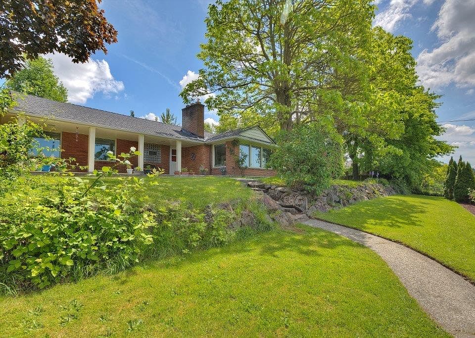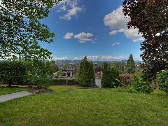 Brick home with 2 Kitchens, 6 bdrms, 2.25 baths, formal living & dining & huge family room on .6551 acres w/ view of the City & across Valley to Olympic Mountains. Has generator hook-up, large party patio w/ exterior fireplace. Main floor is ADA accessible w/ 4 wide halls. Many built-ins provide lots of storage. Office wired for multiple computers w/ electrical circuits separate from household breakers. Garage wired for multiple power tools separate from household breakers. New roof-March 14.