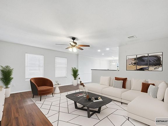 Great opportunity to live in master planned Grand Heritage. This open floor plan is designed with large bedrooms, great living area and kitchen with breakfast bar. Modern color scheme, tons of natural light and a large back yard with extended patio. Community amenities include state of the art work facility, huge community pool, fitness center and splash park.