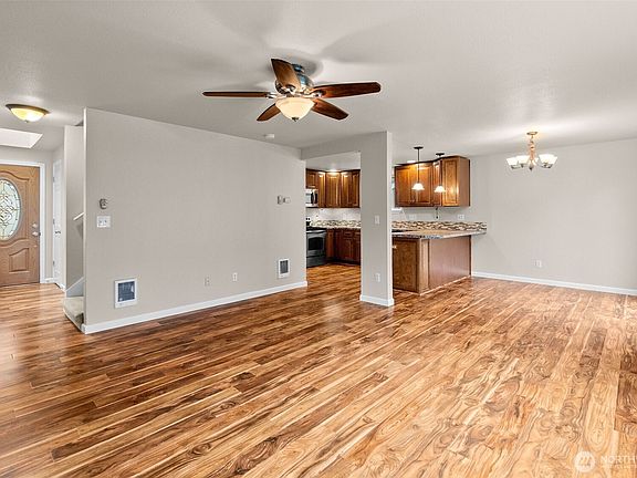 Turnkey 3-BR, 2.5 bath home in the Park! This home is in very good condition and was tastefully updated in 2013. All the bedrooms are up with a large primary bedroom with a walk-in closet and full bath. 30-year roof installed in 2013, white painted millwork and doors, custom cabinets, laminate flooring throughout the main floor with tile in all the baths, brand new carpet, and interior paint. Fully fenced back yard! Affordable HOA dues include a pool, park, and club house. Convenient location to schools, shopping, I-5 and JBLM. All appliances stay!