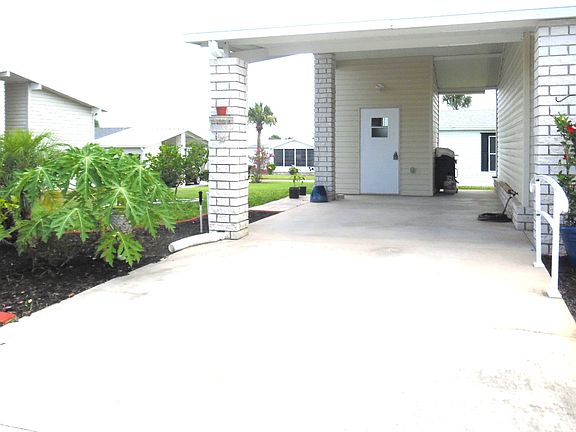 Home features two bedrooms, two baths with a split floor plan, which makes it ideal for when you have guests. All appliances stay, including washer and dryer. Some newer appliances. Pretty laminate flooring throughout home. Step in shower in guest bath. Roof replaced in 2023. Front lanai with windows and ceramic flooring. Single car driveway, carport and shed. All of this sits on a beautiful landscaped lot. Come take a look at this home today!