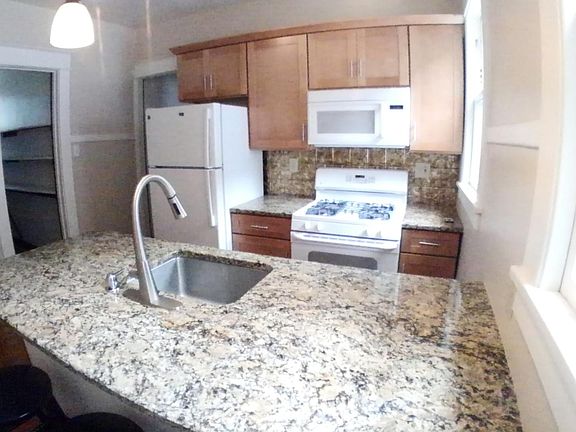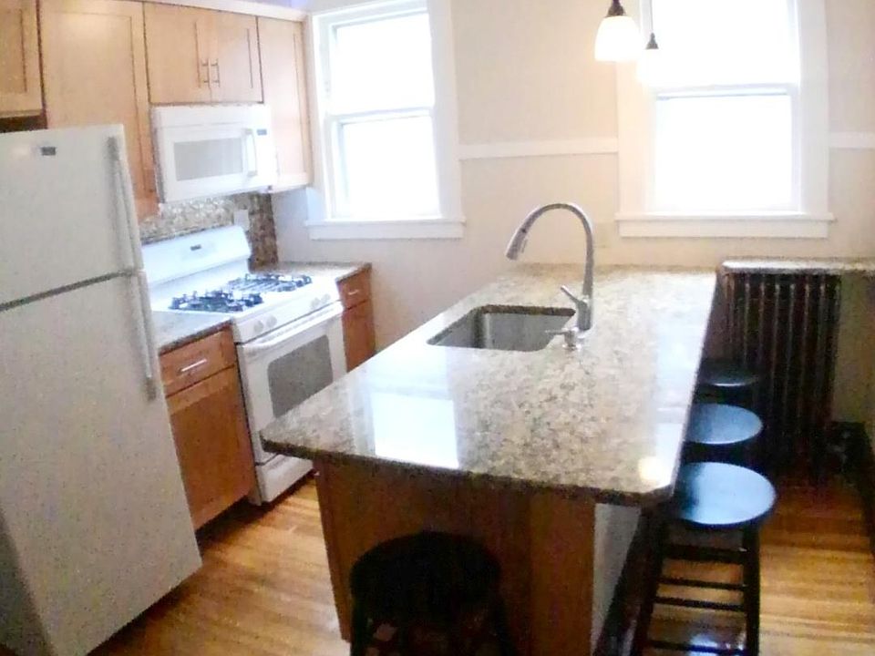 This house with two beautiful apartments is on the quieter side of Madison in a nicer & more expensive neighborhood. It has been completely renovated and has a stunning new kitchen with granite island. This is a 5BR second floor apartment with an average rent of $595 per person or perhaps $470 for the small bedroom and $570 for the larger 4 BRs. If I rent it as a 4BR apartment it would be $595 per person or a total of $2,380. There is a shared driveway that can hold up to 3 cars. Features include: - Brand new stunning kitchen - Granite Island with seating, stools provided - Bosch dishwasher & built-in microwave - Gorgeous refinished woodwork - Ceiling Fans in all BRs & LR - Large BRs, 90 100 square ft each - Gleaming refinished wood floors - Renovated large tiled bathrooms - PARKING included - Washer & Dryer available - Porches on both floors - Huge triple windows in LRs Getting To: St. Rose campus: 0.5 mi, 8 min walk. UAlbany main campus: 0.2 miles (3 min) to Madison Ave Bus Stop(#114), 15 minute ride. Albany Medical College: 0.4 mi, 8min walk. Albany College of Pharmacy / Albany Law School 0.6mi, 11min. Ualbany downtown campus: 0.7 mi, 14 mins. Rooms: Each apt has 4 Bedrooms, Living Room, Eat in kitchens, Bathroom with tub/shower. Upstairs has a smaller 8x10 5th bedroom with a lofted bedframe for a single mattress. BR1 is 8'6" x 10'4" (88sf), BR2 is 10'4" x 9'6" (98sf). For more info, to schedule a showing, or to see my other 20 student apartments in the same area check out UAlbanyApartments. com Student Apartment for June 1st. Owner pays for trash/sewer and water. Tenants responsible for utilities. Other 3BR - 9BR apartments available at UAlbanyApartments. com