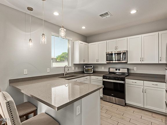 Welcome to this beautiful home located in the desirable gated Roosevelt Park community in Avondale. This charming home offers an open floor plan designed for comfort and style. The inviting kitchen features plenty of cabinetry and counter space, perfect for everyday living and entertaining. The spacious primary suite includes a large walk-in closet for added convenience. Step outside to your private backyard retreat with a cozy firepit, covered patio, pergola, turf, and pavers which are ideal for relaxing or hosting gatherings. This energy-efficient home also features a tankless water heater. Roosevelt Park offers resort-style amenities including a community pool, spa, and volleyball court, creating a friendly neighborhood atmosphere you'll love coming home to. One or more photo virtually staged to enhance the home.