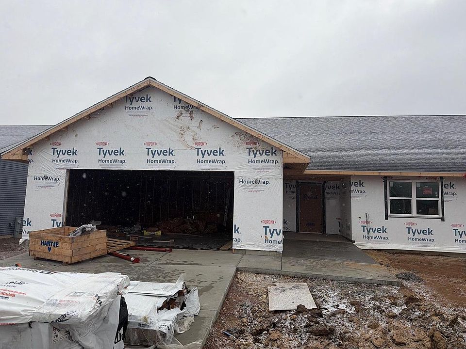 Estimated construction completion date 03/01/2026. Current stage of construction: drywall. Check out our zero lot line twinhome with a new layout! This zero lot line twinhome is open concept and includes 2 bdrms, 2 baths, main level laundry & a beautiful view of the bluffs from your backyard. Enjoy quality finishes like Amish-made cabinetry, Quartz countertops, LVP flooring & stainless steel appliances. Lower level is partially exposed with full-size windows and stubbed bathroom for future expansion. Each 2-car garage features an electric vehicle charging outlet. The Greenfield Reserve neighborhood has a conservancy with trails and room for a future park! Less than one hour drive to either side of Madison!